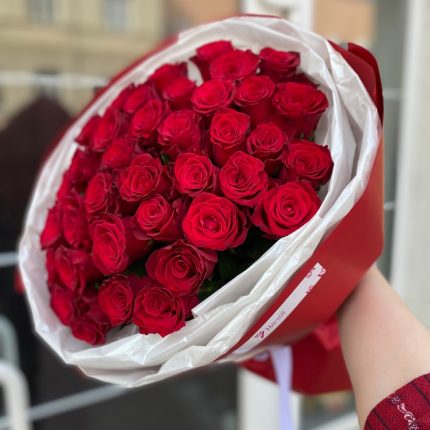Состав: Розы Эквадор 51 шт, упаковка. Состав и расцветка могут незначительно отличаться в зависимости от наличия и сезона.