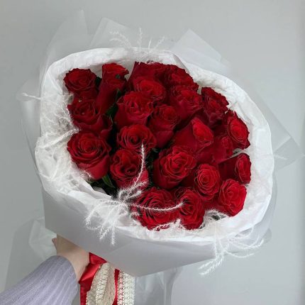 Состав: Роза Эквадор 21 шт, эвкалипт, упаковка. Состав и расцветка могут незначительно отличаться в зависимости от наличия и сезона.