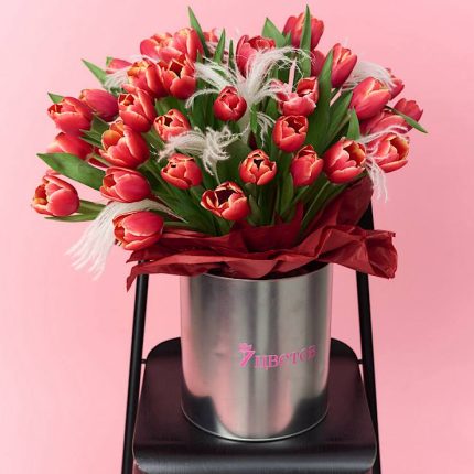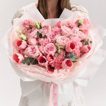 Состав: тюльпан, диантус, альстромерия, озотамнус, упаковка.
