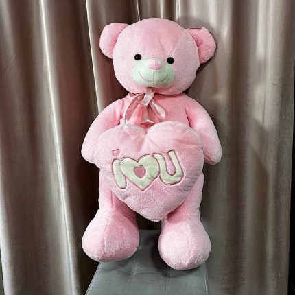Игрушка Большой мишка розового цвета с сердечком